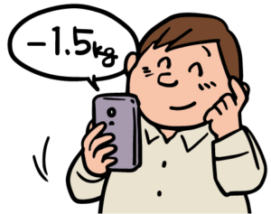 こんなことでやせるのか不安だったが、続けていたら「-1.5kg」になった。保健師に結果を報告したら、とても喜んでくれた。もう少し歩く時間を増やしてみるつもり。