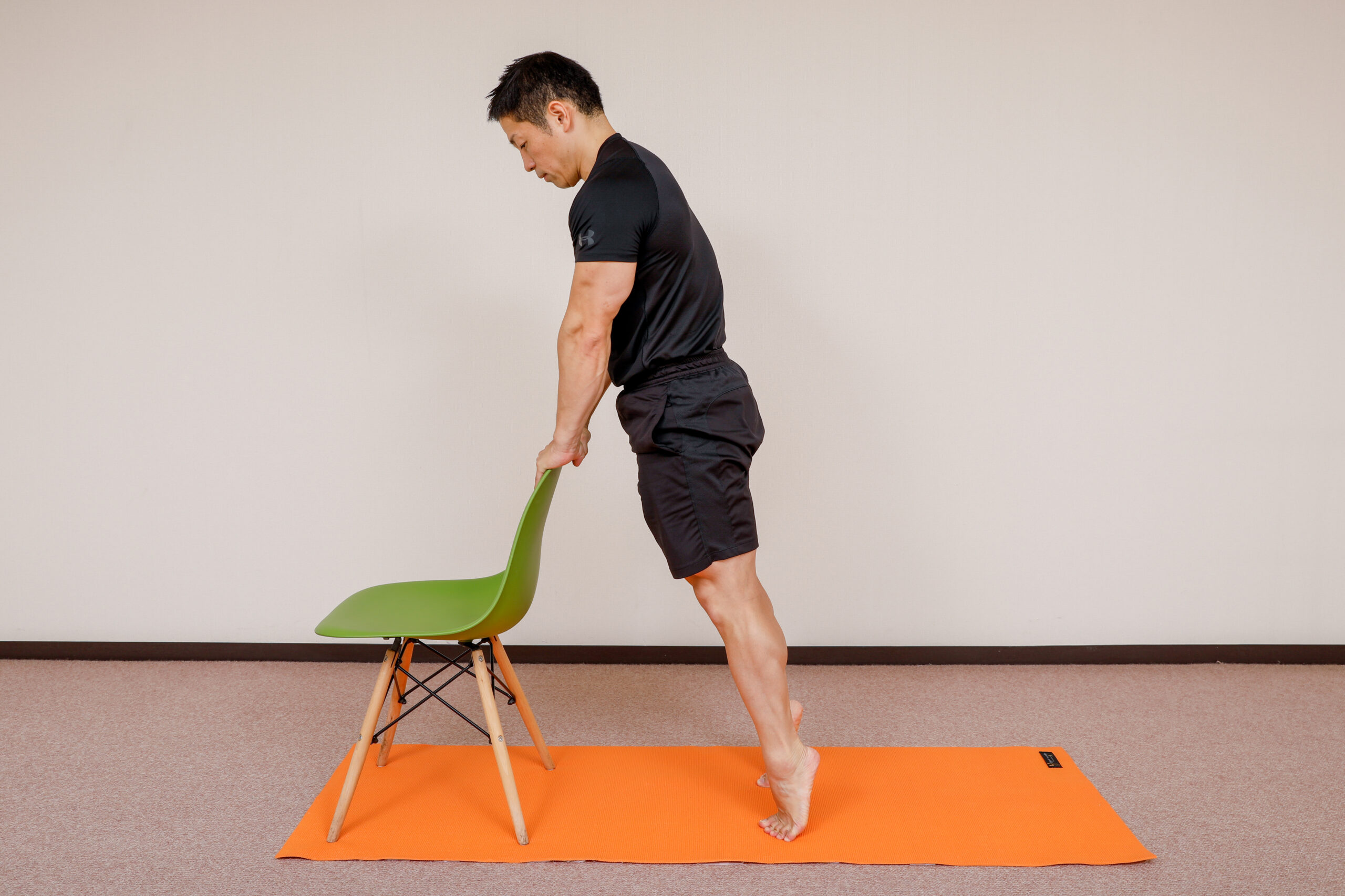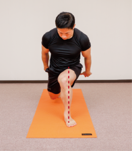 片方の脚をなるべく遠くの後方につき、腰を落とします。左右交互に繰り返します。