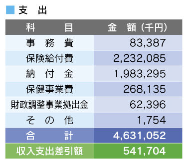 令和2年度の決算状況は、一般保険においては総収入が51億7,300万円、総支出が46億3,100万円となり、収支は差引5億4,200万円の黒字となりました。